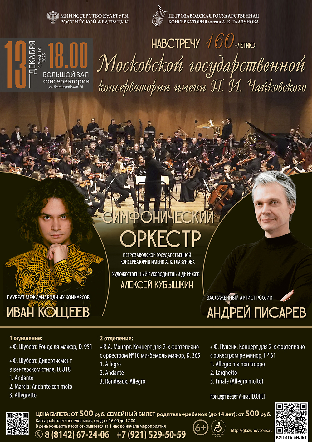 13 декабря 2025 года в 18.00 в Большом зале консерватории (ул. Ленинградская, 16) состоится концерт «Навстречу 160-летию Московской государственной консерватории имени П. И. Чайковского»
