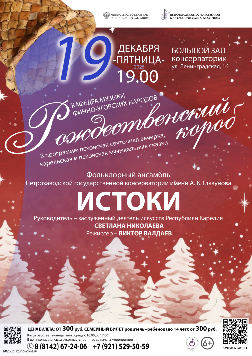 19 декабря 2025 года в 19.00 в Большом зале консерватории (ул. Ленинградская, 16) состоится концерт кафедры музыки финно-угорских народов «Рождественский короб».