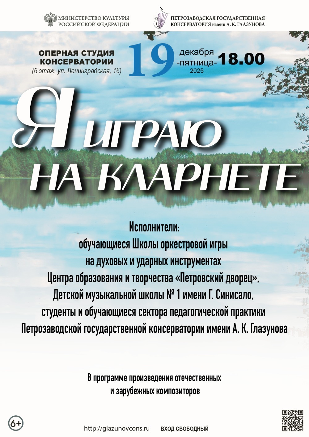 19 декабря 2025 года в 18.00 в Оперной студии консерватории (ул. Ленинградская, 16, 6 этаж) состоится концерт «Я играю на кларнете».