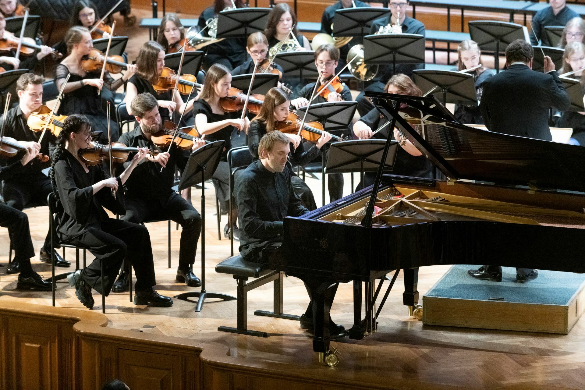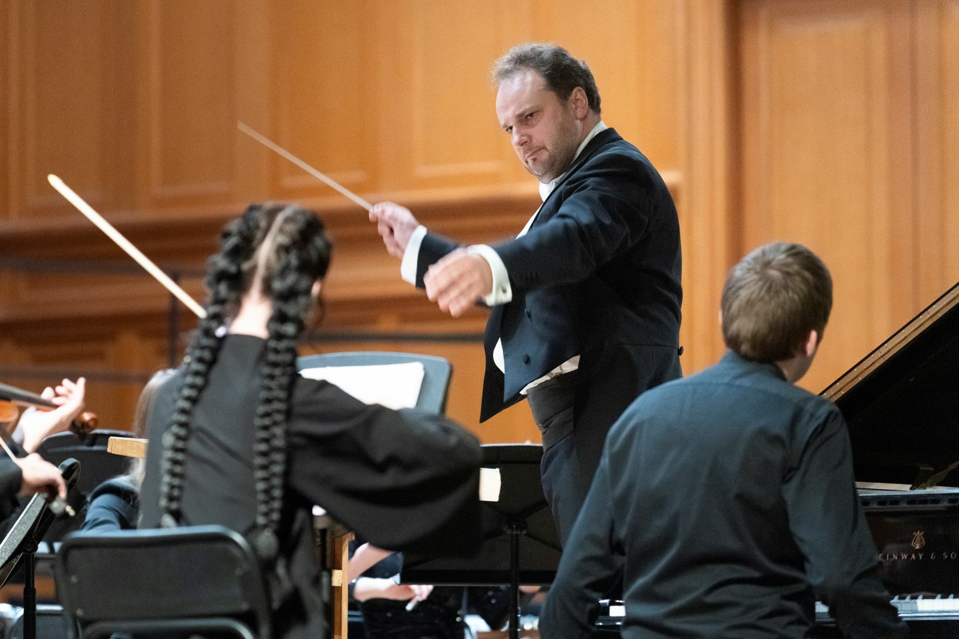 Хотя Танеев гордился своим музыкальным происхождением «от Чайковского», который был его учителем по композиции, юный автор в первом же крупном сочинении – фортепианном концерте – распрощался со своим любимым наставником. Там, где незабвенный Пётр Ильич являл чудеса мелодической щедрости и сердечной открытости, его любимый ученик Танеев в предельно экономной форме демонстрировал несгибаемость духа, титаническую силу воли и мелодический аскетизм. Нельзя было не заметить авторский алгоритм, повторяющийся на разные лады: рядом стоящие звуки с трудом уступали место друг другу, образуя суровую ступенчатую линию. Встраиваясь в этот поток, лауреат последнего конкурса Чайковского Станислав Корчагин обрушил на слушателей лавину пианистической мощи, сметающей всё на своём пути – такая энергия, казалось, могла бы двигать горы. Оркестр под руководством ректора Петрозаводской консерватории Алексея Кубышкина деликатно посторонился, с северной скромностью поддерживая солиста. Вздумай оркестр и дирижёр выделиться в этом музыкальном поединке, их общее звучание превысило бы слуховые ресурсы аудитории, что и было учтено дирижёром с полнейшей неизбежностью.