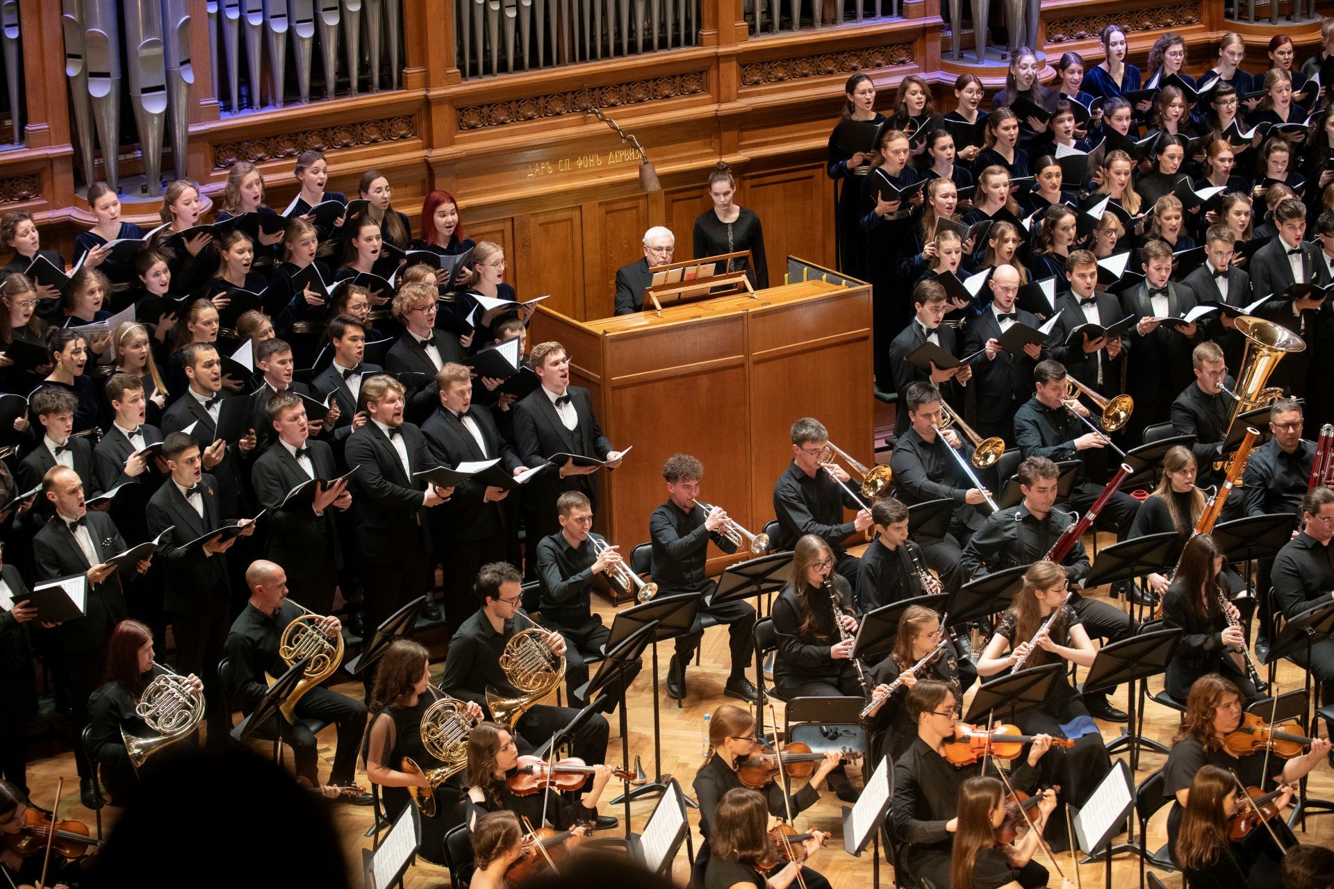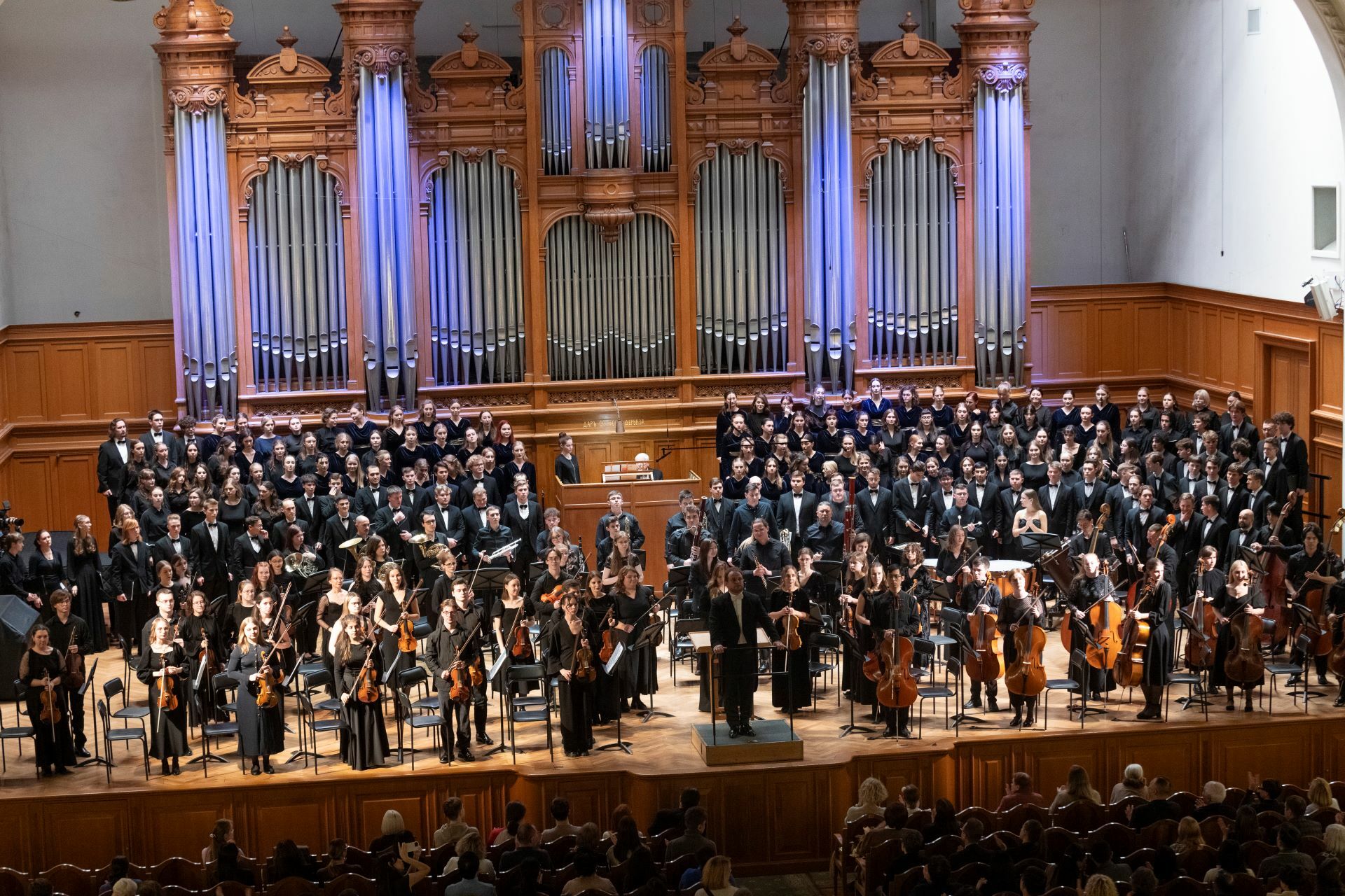В исполнении кантаты приняли участие Академический хор Российской академии музыки имени Гнесиных (художественный руководитель – Денис Морозов) и Академический хор Музыкального училища имени Гнесиных (руководитель – Оксана Глазева).