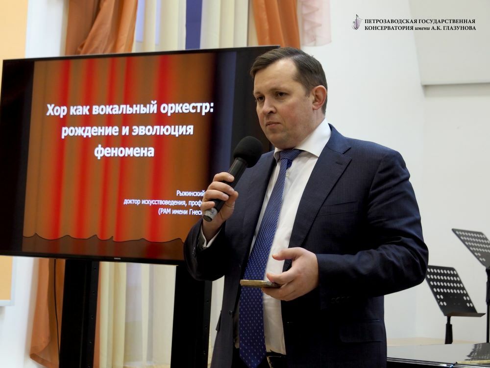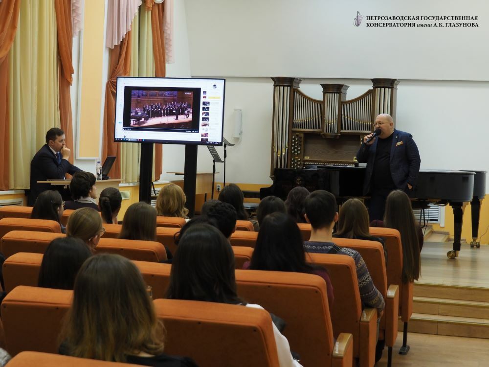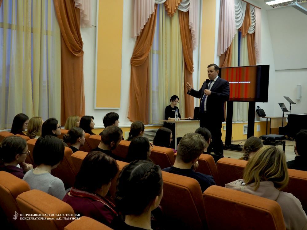 10 декабря в рамках проведения конкурса состоялась лекция Александра Сергеевича Рыжинского «Хор как вокальный оркестр: рождение и развитие феномена». Вечером того же дня творческую встречу с обучающимися и преподавателями провел композитор Сергей Викторович Екимов.