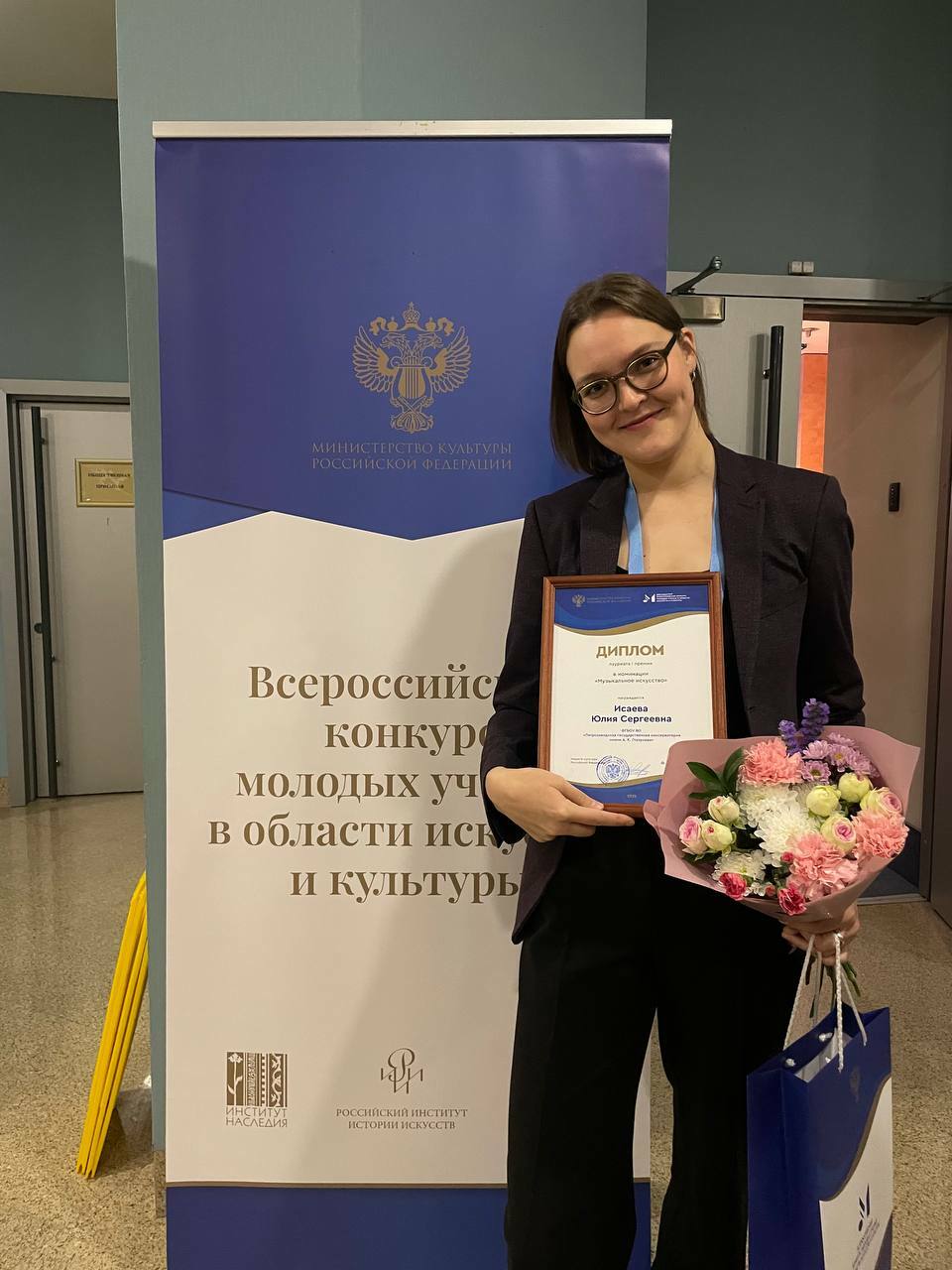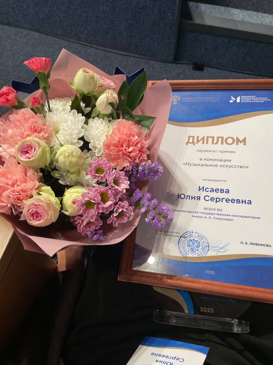 21 ноября 2025 года в Министерстве культуры Российской Федерации состоялось награждение победителей Двенадцатого Всероссийского конкурса молодых ученых в области искусств и культуры. В этом году жюри присудило звание Лауреата I степени в номинации «Музыкальное искусство» Исаевой Юлии Сергеевне, выпускнице кафедры теории музыки и композиции Петрозаводской государственной консерватории имени А.К. Глазунова.