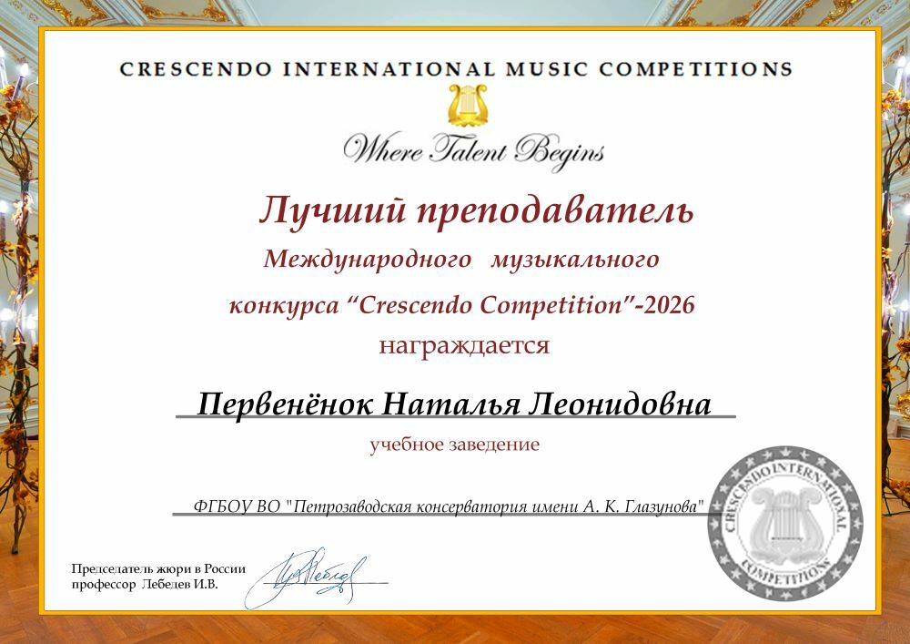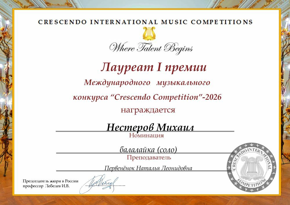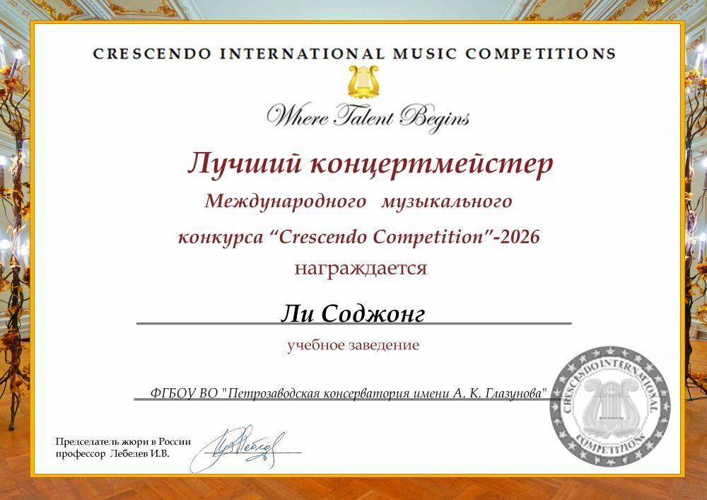 С 14 по 16 ноября 2025 года в Санкт-Петербурге состоялся XX международный музыкальный конкурс "Крещендо" - 2026.