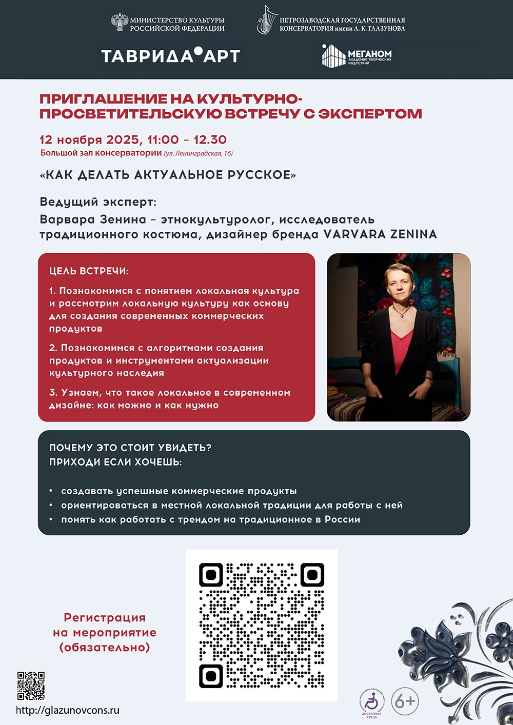12 ноября 2025, 11:00 - 12.30. Большой зал консерватории (ул. Ленинградская, 16). Культурно-просветительская встреча с экспертом «КАК ДЕЛАТЬ АКТУАЛЬНОЕ РУССКОЕ».