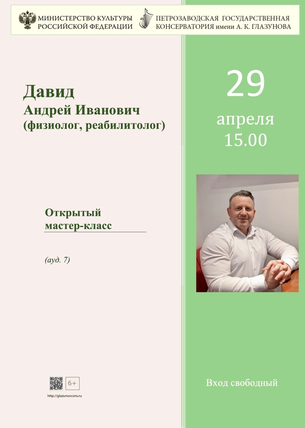 29 апреля в 15.00 в аудитории №7 состоится открытый мастер-класс Давида Андрея Ивановича (физиолог, реабилитолог).
