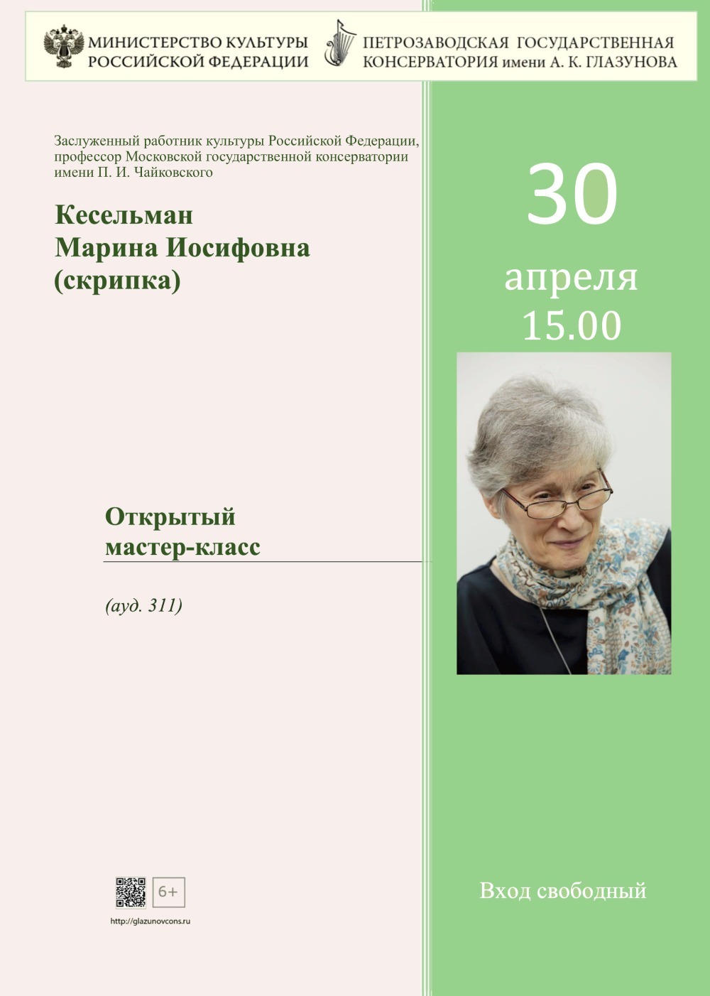 30 апреля в 15.00 в аудитории №311 состоится открытый мастер-класс заслуженного работника культуры Российской Федерации, профессора