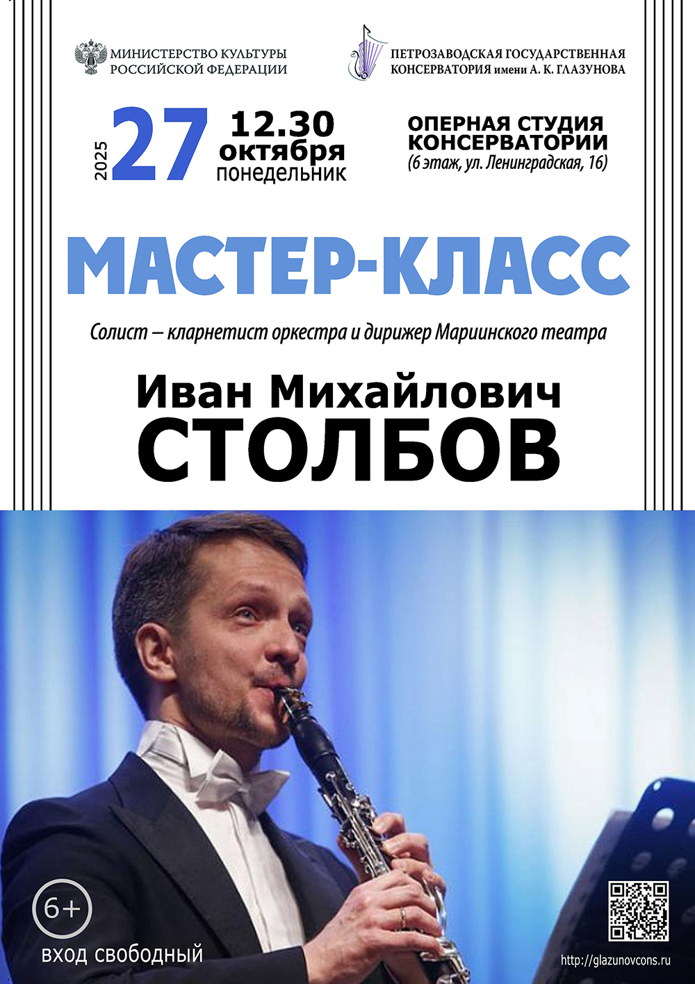 27 октября 2025 в 12.30. Оперная студия консерватории (6 этаж, ул. Ленинградская, 16).