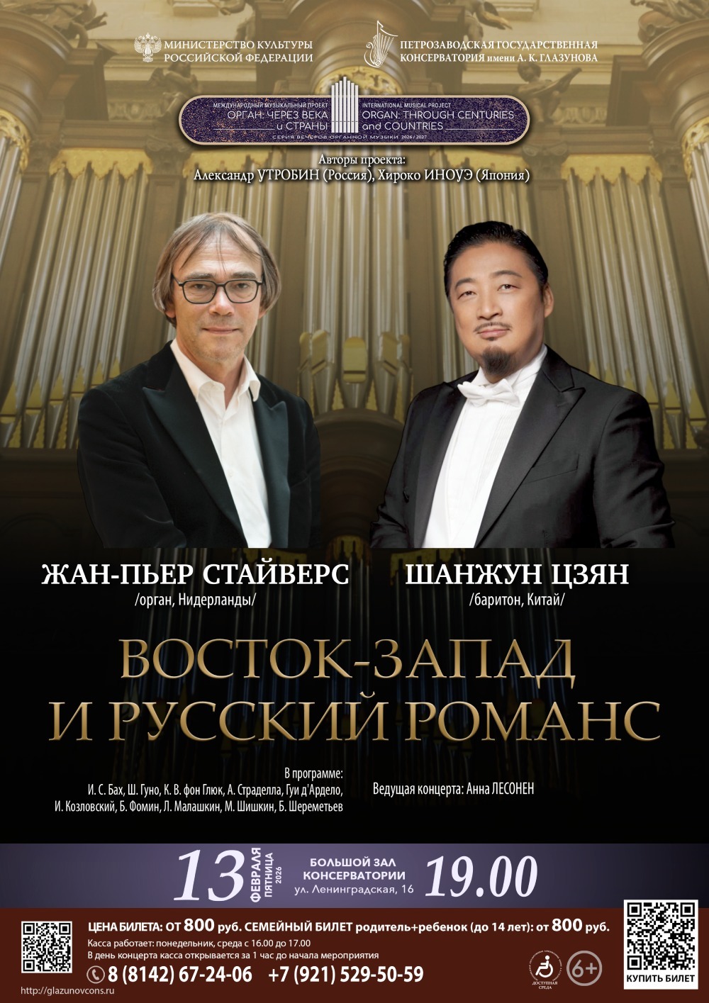 13 февраля 2026 года в 19.00 в Большом зале консерватории (ул. Ленинградская, 16) в рамках Международного музыкального проекта «Орган через века и страны» – серии вечеров органной музыки 2026/2027 – выступят Жан-Пьер Стайверс /орган, Нидерланды/ и Шанжун Цзян /баритон, Китай/.