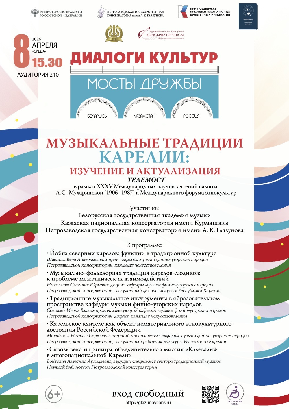 8 апреля 2026 года в 15.30 в аудитории 210 (ул. Ленинградская, 16) состоится телемост в рамках XXХV Международных научных чтений памяти Л. С. Мухаринской (1906–1987) и Международного форума этнокультур