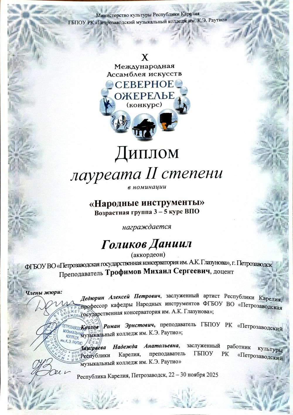 Голиков Даниил – лауреат II степени (класс доцента Трофимова М.С.)!