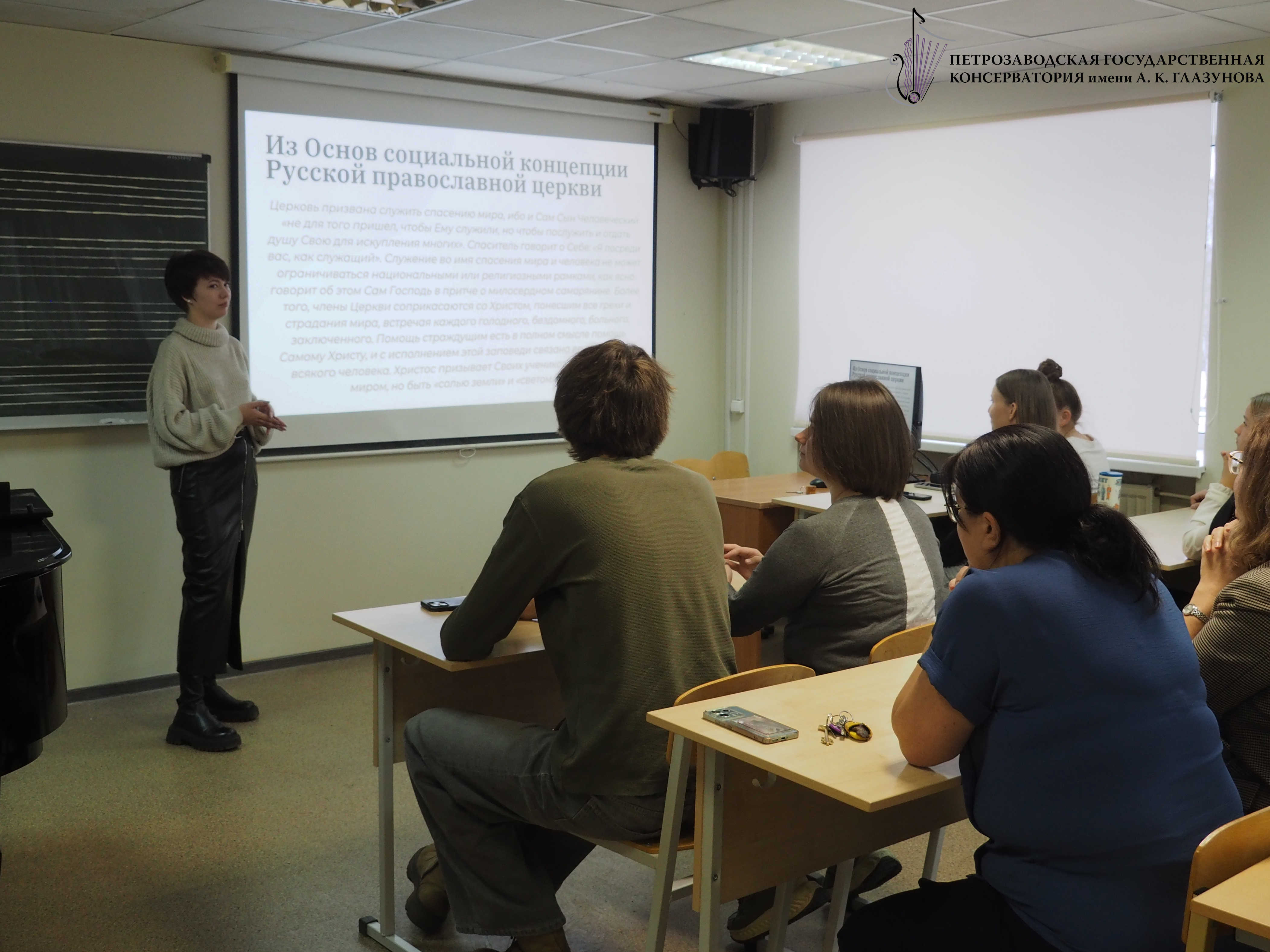 20 ноября 2025 года в Петрозаводской государственной консерватории имени А. К. Глазунова прошла встреча обучающихся с психологом, аналитиком Координационного центра Петрозаводского государственного университета по профилактике экстремизма и терроризма Дарьей Сергеевной Абрамовой.
