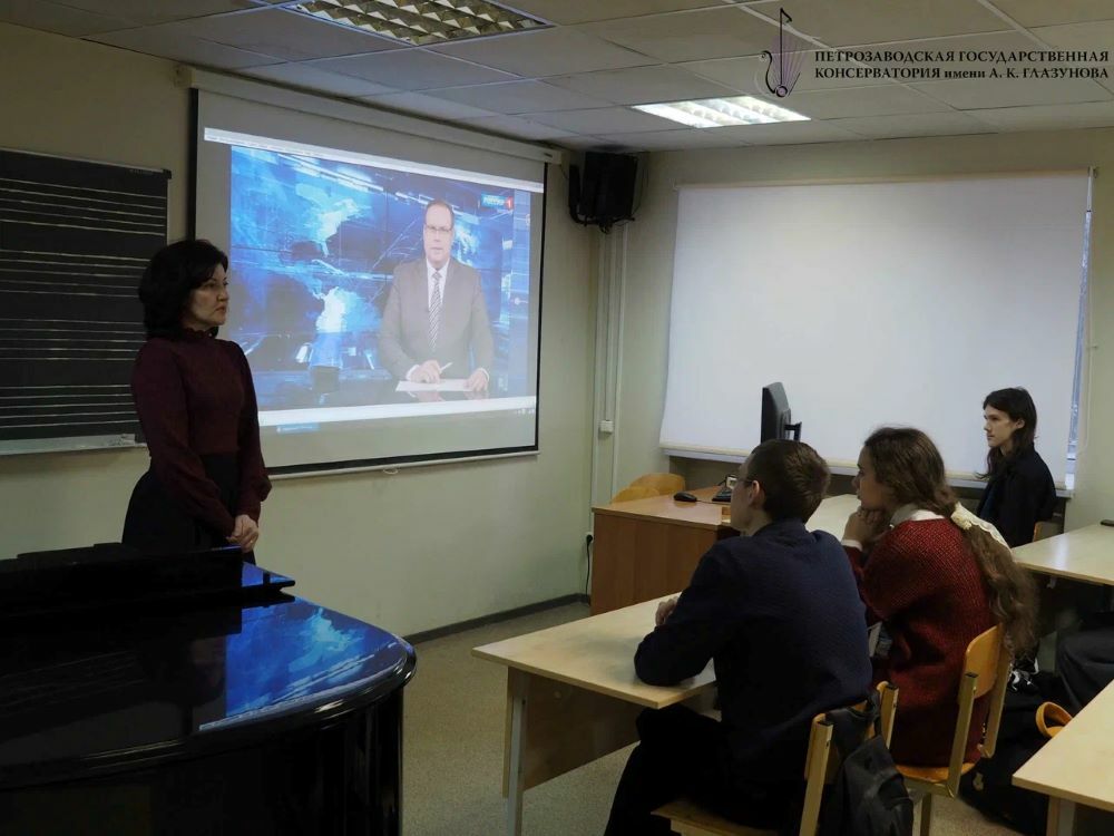 12 декабря 2025 года в Петрозаводской государственной консерватории имени А. К. Глазунова в рамках цикла «Разговоры о важном» для обучающихся по программам среднего профессионального образования выступили сотрудники УФСБ России по Республике Карелия с вопросом о недопустимости совершения неправомерных действий, которые могут повлечь за собой негативные последствия.
